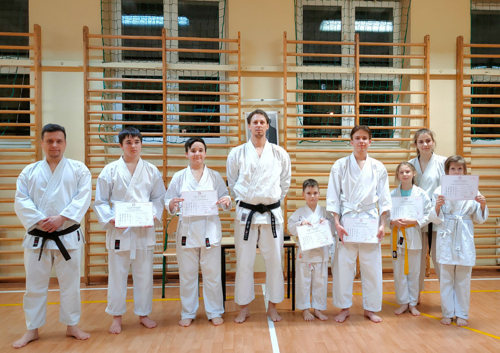 W dniu 22.02.22 odbył się w naszym klubie kolejny egzamin na stopnie uczniowskie. Egzamin przebiegł pomyślnie, zdający wykazali duże zaangażowanie. Oczywiście zawsze można zrobić coś lepiej, ale jako egzaminator jestem zadowolony (a nie łatwo mnie zadowolić). Wszystkim zdającym serdecznie gratuluję pierwszych kroków na drodze karate i życzę dalszego rozwoju.