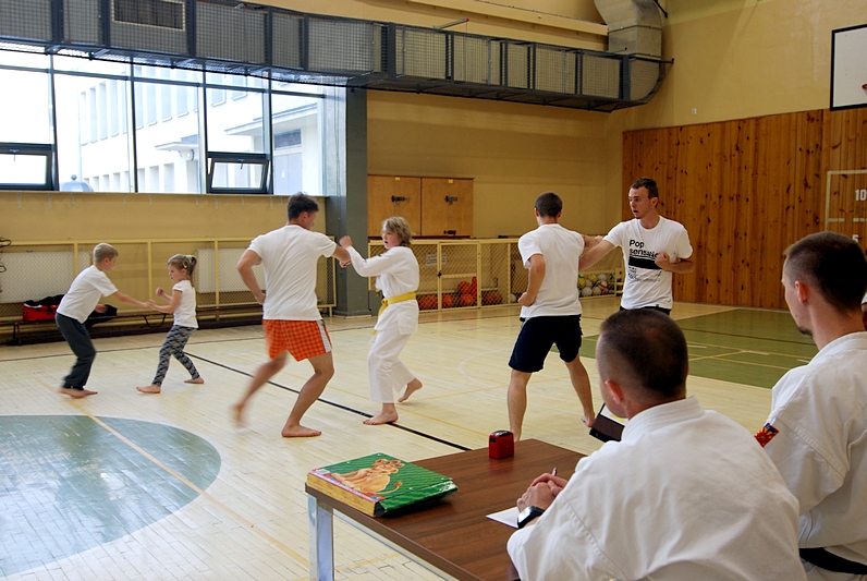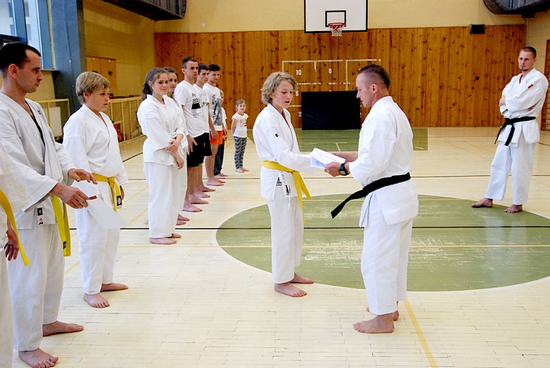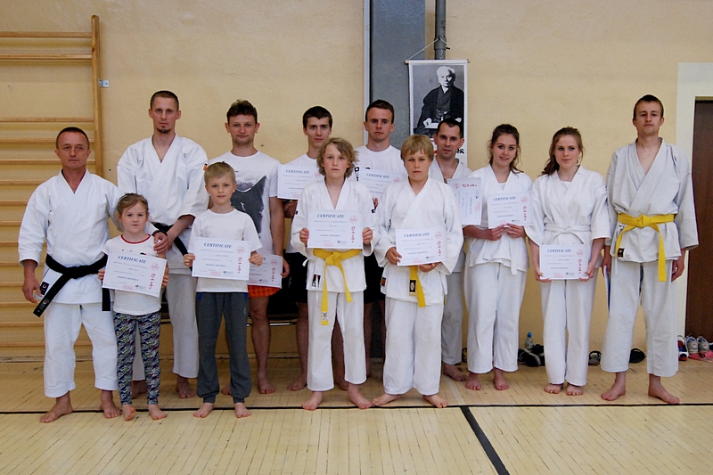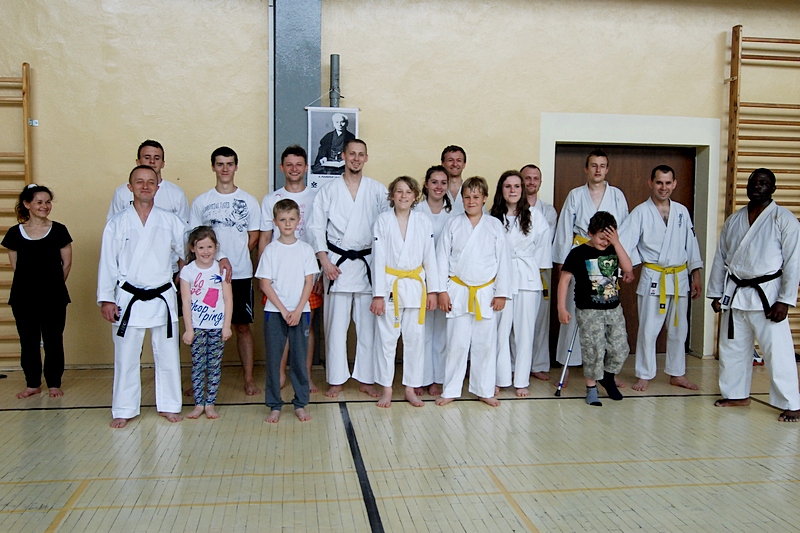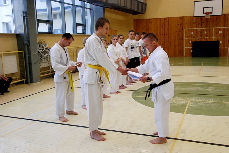 Po drugim treningu odbył się egazmin na wyższe stopnie dla osób z naszej sekcji. Pomimo wcześniejszych treningów egzamin był prowadzony w szybkim tempie co z pewnością było próbą wytrzymałości dla zdających. Najważniejszcze że dali radę i wszyscy wypadli pozytywnie. Gratulacje dla Julki i pozdrowienia dla Tomka. Oni wiedzą za co ;-)