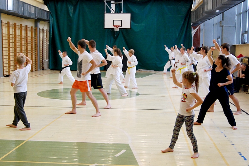Za nami II staż z shihanem Dąbrowskim w Kielcach. Tym razem odbył się on tam gdzie na co dzień mamy zajęcia, czyli na Politechnice Świętokrzyskiej przy Al. Tysiąclecia. W jego ramach odbyły dwa treningi, poranny i wieczorny. Na porannym treningu skupiliśmy się głównie nad doskonaleniem poruszania trzema sposobami (yori ashi, suri ashi, keashi), oraz dystansie i szybkości startowej. Popołudniowy trening poświęcony był doskonaleniu kata poprzez odtwarzanie go w różnych wariantach (np. wszystkie techniki do tyłu). Ćwiczyliśmy także nowe formy kihonu i kaeshi kumite (kaeshi - kontratakt).