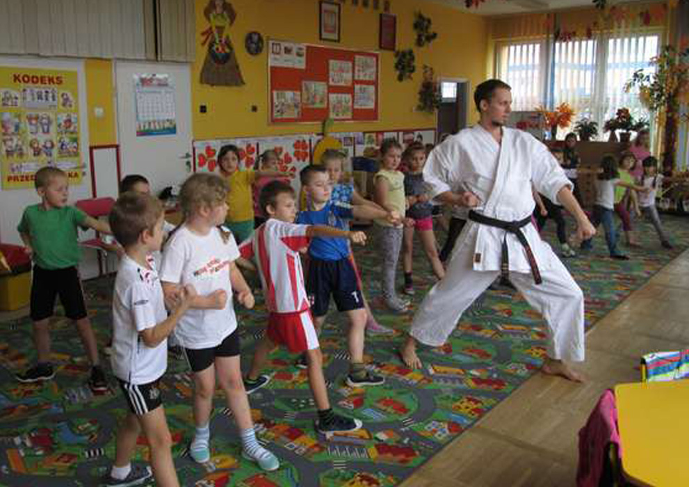 Jeden z pierwszych treningów w kieleckiej sekcji Szkoły Karate Shotokan Samuraj.